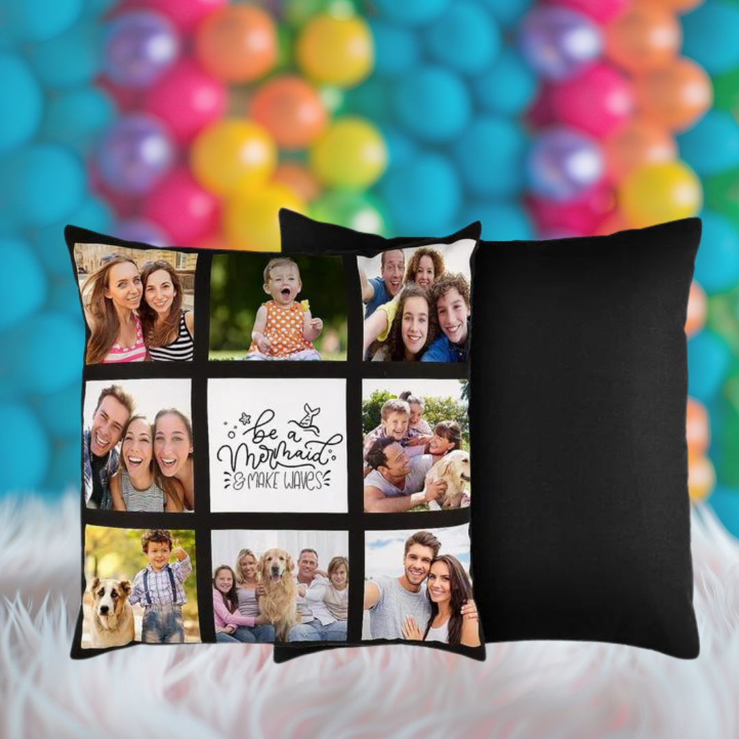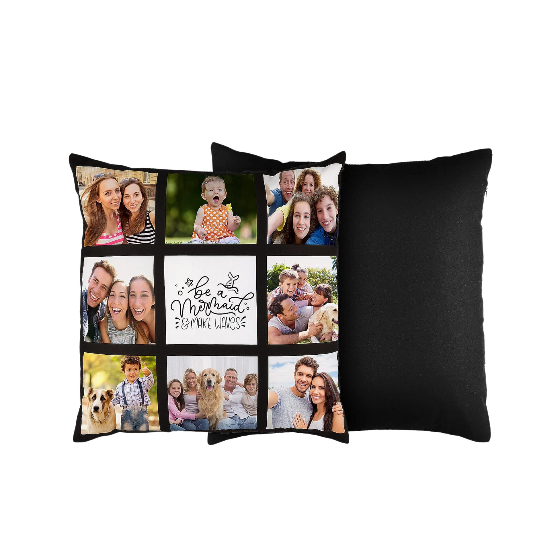 Custom Photo Pillow is the perfect way to spruce up your decor and add a meaningful touch to your space. Each cover is composed of 9 panels that can be printed with any image of your choice for a unique design. This makes a great gift and an even better complement to the matching throw available.