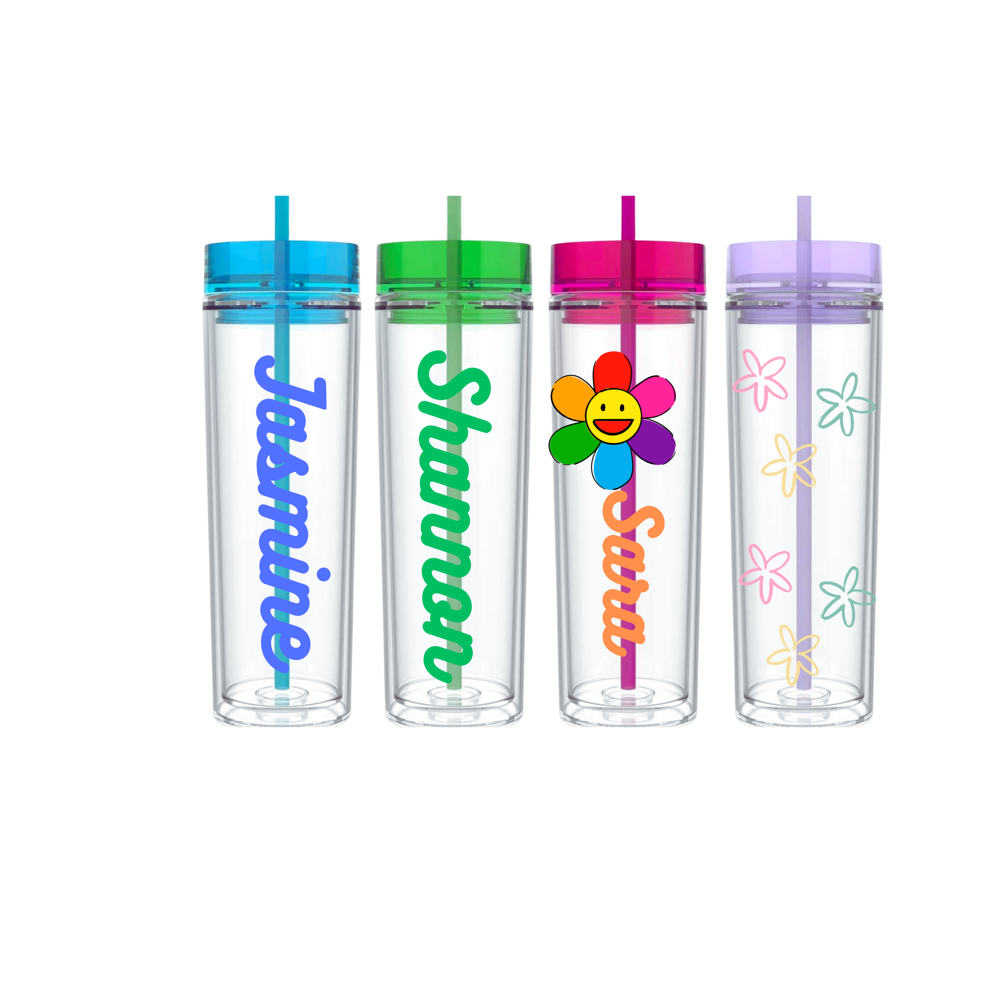 Stay hydrated with this stylish and durable 16oz double-walled Skinny Acrylic Tumbler personalized with your name. Includes a matching straw so you can enjoy your favorite drink in comfort and style. Keep your drinks cold or hot for hours; perfect for everyday use.